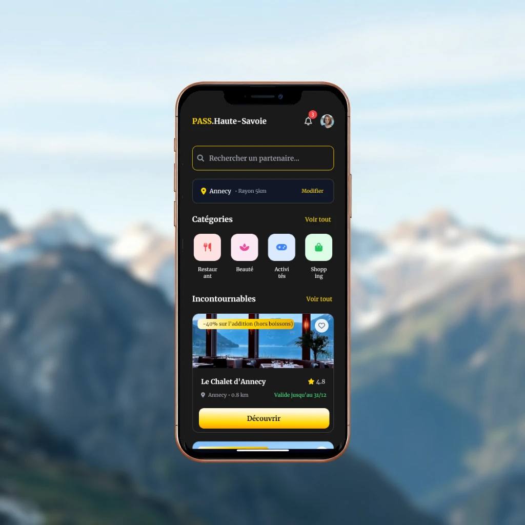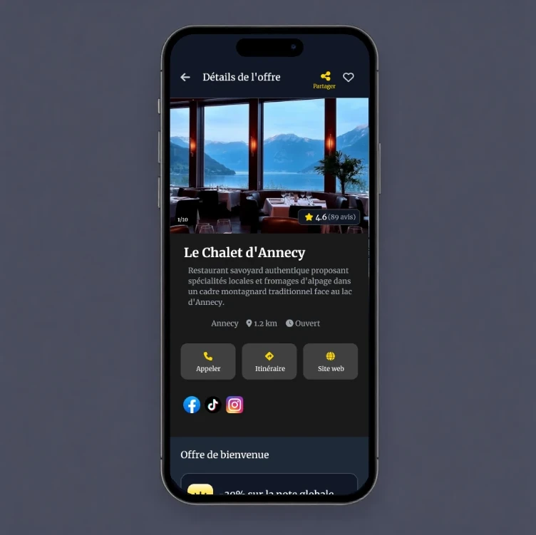 Une application mobile qui révolutionne votre expérience touristique et locale en Haute-Savoie. Connectez-vous avec les meilleurs établissements et profitez d'offres exclusives.